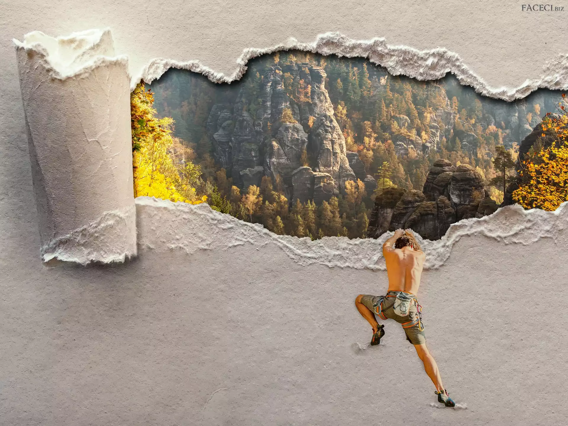 Papier, Mężczyzna, Grafika, Wspinaczka, Rozdarty, Góry - faceci.biz